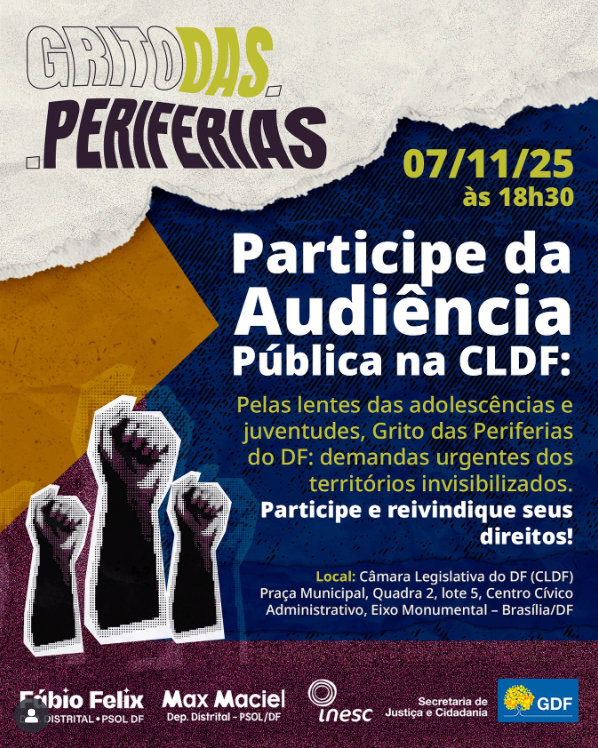 “A audiência pública se faz necessária para cobrar das autoridades do DF maior transparência e compromisso com os recursos e políticas públicas voltadas às regiões e populações mais vulnerabilizadas”, destaca Felix. “O encontro também será espaço para apresentar propostas concretas que contribuam para a melhoria das condições de vida das adolescências e juventudes periféricas”, frisa.