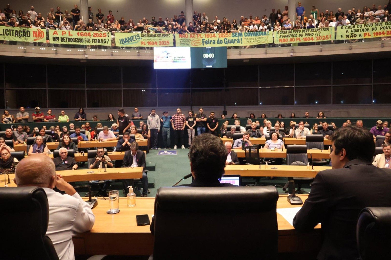 Na noite de (26), a Câmara Legislativa do Distrito Federal (CLDF) realizou uma audiência pública para debater a situação das feiras livres e permanentes do DF. Presidida pelo deputado distrital Ricardo Vale (PT), a sessão reuniu feirantes, representantes do setor e parlamentares, que lotaram o plenário e a galeria, manifestando forte descontentamento com o atual tratamento do Governo do Distrito Federal (GDF) ao tema.