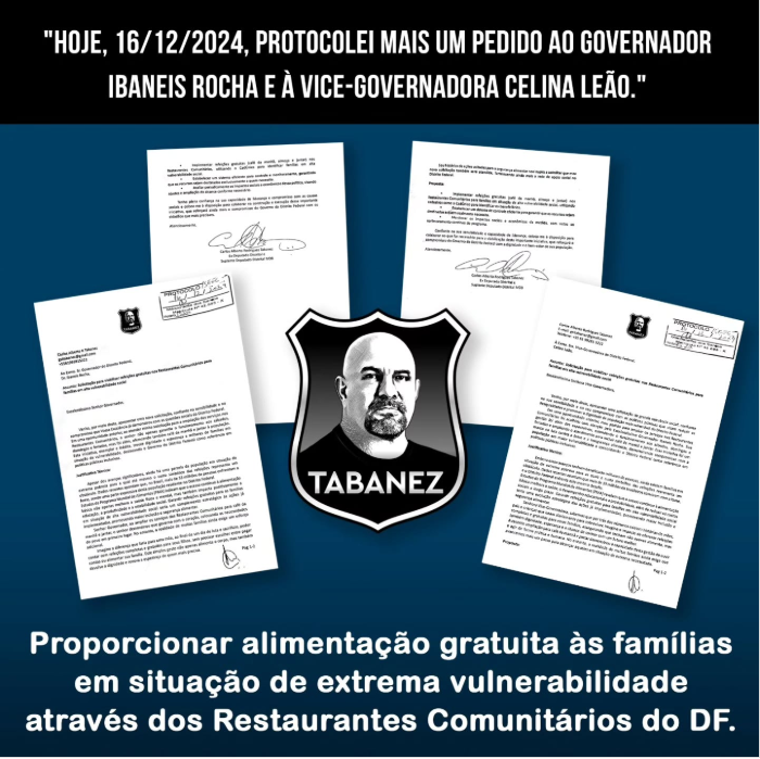 O Incansável Tabanez confia, que o governador e a vice-governadora, sensíveis às causas sociais, entenderão a importância desse pedido e darão um passo à frente para proteger as famílias do DF. Cuidar das pessoas é o primeiro passo para construir uma sociedade mais justa e solidária.