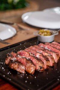 O menu foi especialmente elaborado para harmonizar com os vinhos e inclui salada caprese, carpaccio de Angus defumado, cupim defumado, denver com purê de batata e ancho com legumes grelhados, compondo uma sequência gastronômica que explora diferentes sabores, aromas e texturas.