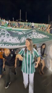 Após breve visita ao Restaurante Comunitário da região, ex-secretária de Desenvolvimento Social, Ana Paula Marra, acompanhou a vitória gamense no Bezerrão