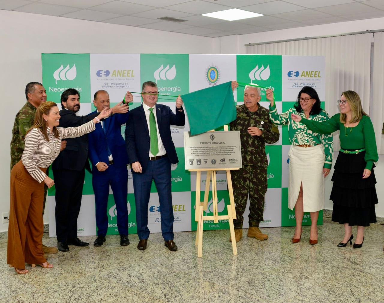 Brasília, 31 de julho de 2025 – A Escola de Inteligência Militar do Exército (EsIMEx), localizada no Setor Militar Urbano, inaugurou nesta quinta-feira (31) sua nova usina solar fotovoltaica. A unidade passa a operar com energia limpa e renovável, fruto de uma parceria entre a Neoenergia e o Ministério da Defesa, por meio do Exército Brasileiro. A cerimônia contou com a presença dos generais Anísio David de Oliveira Júnior e Carlos Eduardo Barbosa, do diretor-presidente da Neoenergia, Frederico Candian, do coordenador de Apoio à Articulação Institucional do Ministério de Minas e Energia, Bruno Ribeiro, e do secretário de Inovação e Transição Energética da Aneel, Paulo de Carvalho. Também participaram do evento outros representantes da Neoenergia e do Exército Brasileiro.