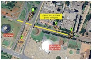 Das 23h59 de sexta (2) às 3h de sábado (3), as vias S1, N1 e S2 serão impactadas pela filmagem “Pequenas Criaturas”. Até 1h30, o fechamento será intermitente em todo o trecho da S1 e N1 que contorna o Congresso Nacional. Já das 2h às 3h, haverá o fechamento dos acessos à via S2, pois o trecho entre o Palácio do Itamaraty até próximo à Catedral estará fechado para as gravações.