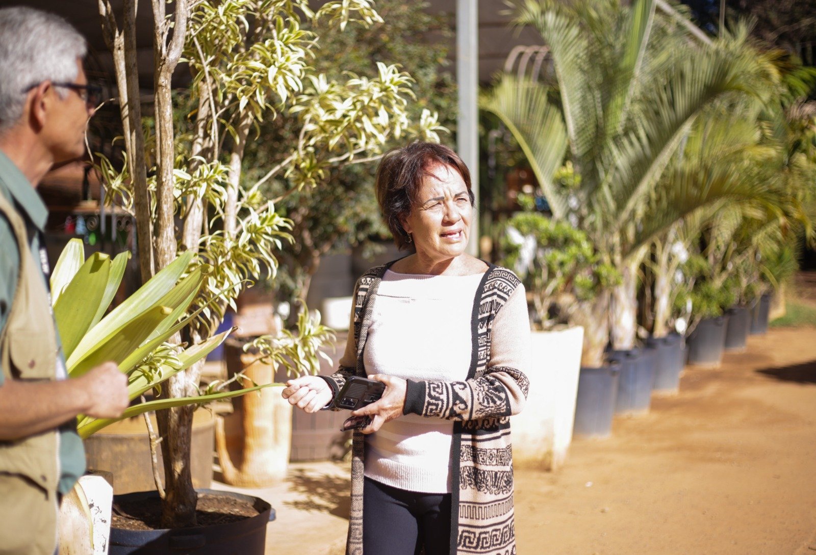 Cátia Benícius, proprietária do Viveiro Oreades, conta que o local recebe visitas quinzenais dos vigilantes ambientais: “Eles nos orientam sobre possíveis falhas que, às vezes, não conseguimos detectar sozinhos”. Foto: Ualisson Noronha/Agência Saúde-DF
